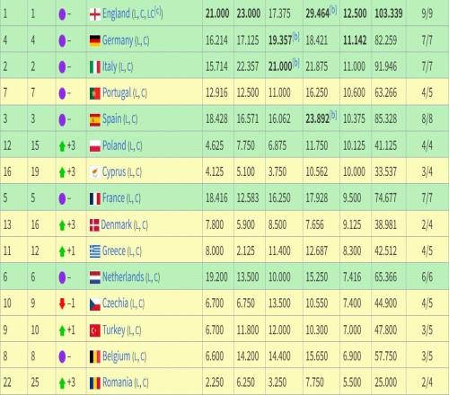 2526赛季至今欧战积分排名:英超德甲前二,西甲第五法甲第八
