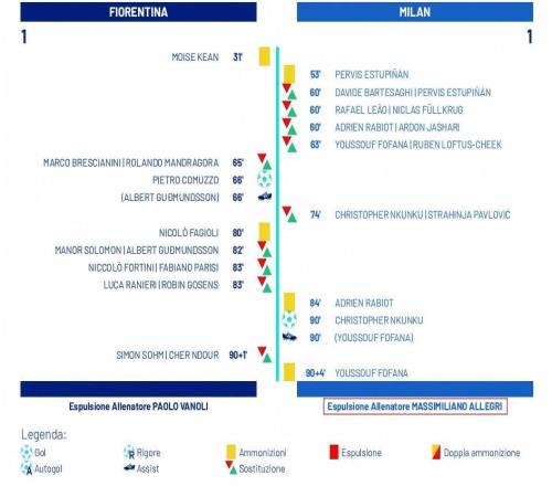 裁判报告显示,阿莱格里在对阵佛罗伦萨的比赛中被罚下