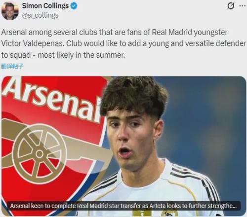 阿斯:阿森纳有意皇马小将巴尔德佩尼亚斯,但交易难度极大