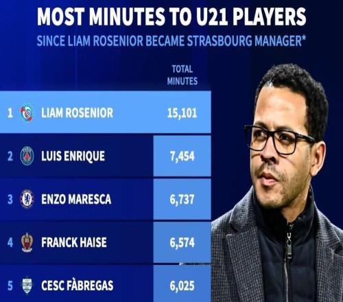 断崖领先,罗塞尼尔执教白堡同期使用U21球员时间五大联赛第1