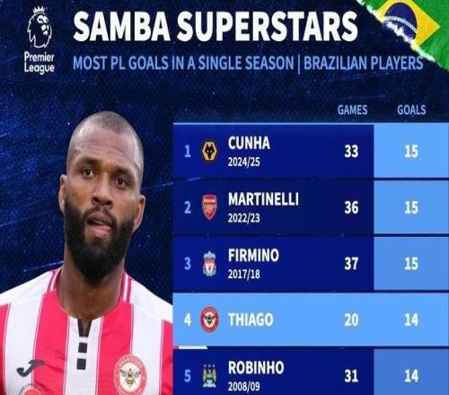 狂轰16球!英超进球最多的巴西球员却从未进过国家队