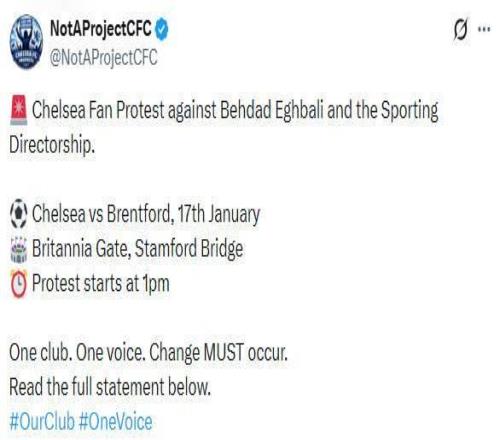 马雷斯卡下课后,一切尔西球迷组织号召对小蜜蜂时抗议俱乐部