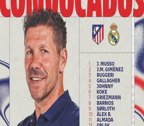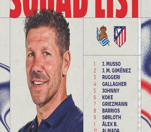 马竞客战皇家社会:阿尔瓦雷斯搭档瑟洛特,小西蒙尼出战