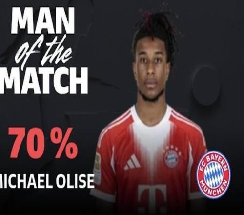 两球一助,奥利塞当选拜仁vs狼堡全场最佳球员
