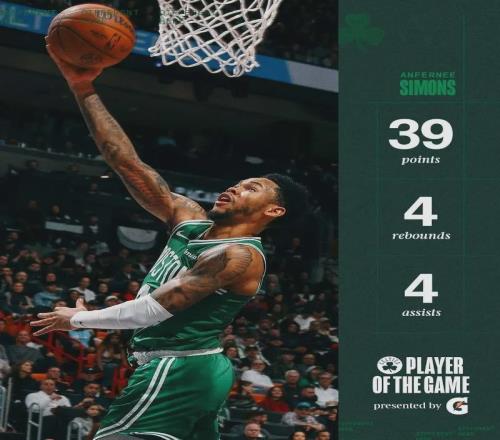 布朗复出27+7绿军19分逆转双杀热火西蒙斯39+7三分赛季新高