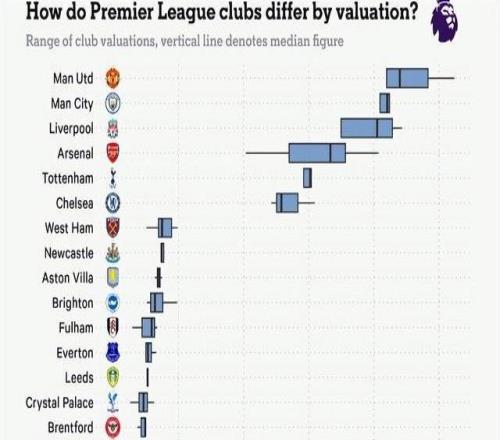 TA:英超20家俱乐部,身价分别是多少