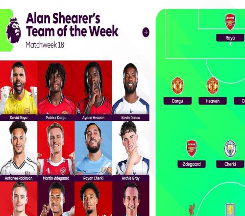 希勒评英超本轮最佳阵容:维尔茨、谢尔基、厄德高在列