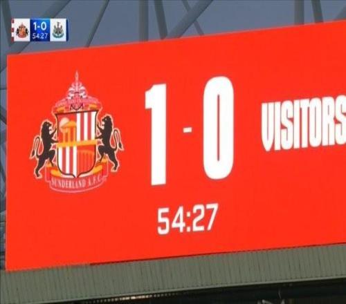 德比氛围!桑德兰主场比分牌不写死敌纽卡队名,只写“客队”