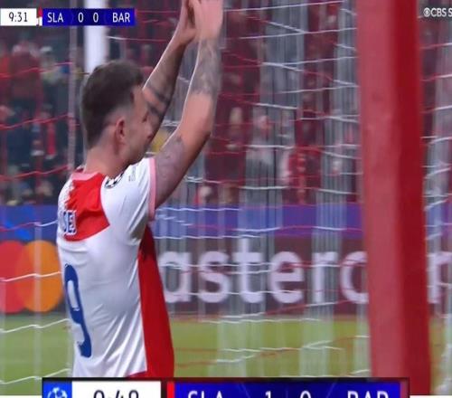 攻破巴萨大门,布拉格斯拉维亚结束欧冠连续5场进球荒