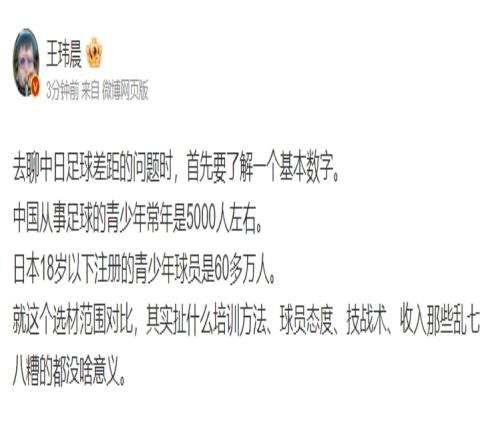 “去聊中日足球差距的问题时,首先要了解一个基本数字。