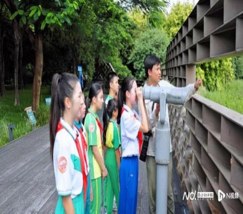 在雁来栖观鸟栈道上,好少年宣讲团驻足欣赏海珠湖美景。随着海珠湿地自然导师张陆欣的讲述,一段与体育赛事紧密相连的城市记忆缓缓展开——2010年,广州迎来了第16届亚运会,为兑现“绿色亚运”的承诺,改善城市生态,这片人工湖应运而生。