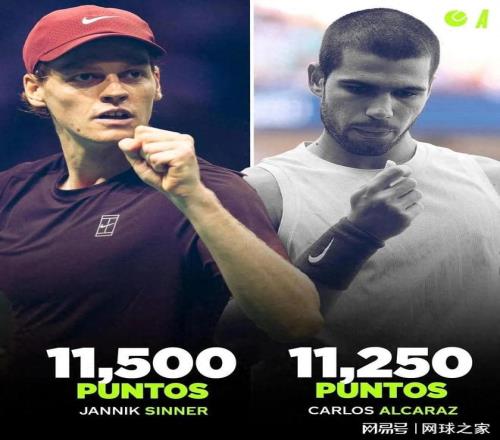 当前辛纳的积分是11500,阿尔卡拉斯是11250,两人之间的分差并大。对于意大利人来说,如果想以世界第一为2025赛季完美收官的话,就得看阿尔卡拉斯在都灵总决赛的表现如何了。