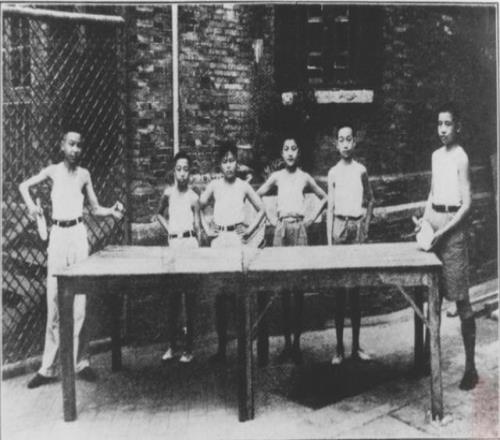 1938年弄堂里打乒乓球的少年。图片来源:《老上海风情录(四)体坛回眸卷》