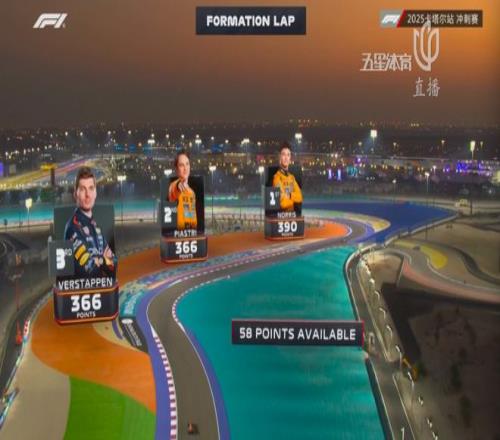 稍早结束的冲刺排位赛上,几位还处在争冠行列的车手中,皮亚斯特里获得杆位,诺里斯第三发车,维斯塔潘仅仅排在第6位。
