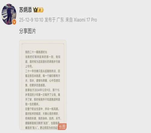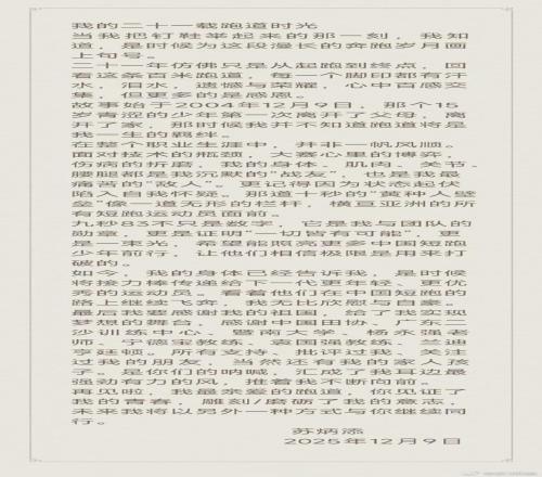 刚刚(12月9日),男子100米亚洲纪录保持者、中国短跑名将苏炳添发布微博宣布退役。