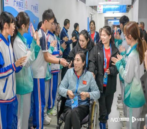 不止于奥运冠军,坐式排球赛场的观众席上,各类人群会聚一堂,构成一幅多元融合的生动图景。残障观众在轮椅坐席享受比赛,高校师生将赛场化作“行走的专业课”,中小学生现场体验“思政课堂”,还有普通市民、康复学校师生等不同群体齐聚赛场,用热情与关注为运动员们喝彩,让赛场成为传递包容与敬意的纽带。