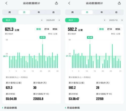 叶瑞去年以及今年9月和10月的跑量