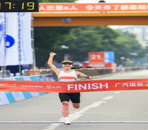 ▲全马项目-女子冠军冲线