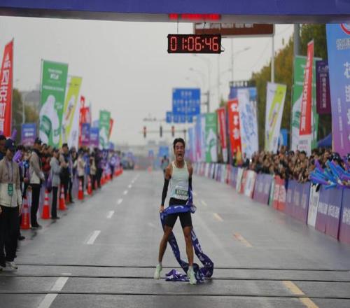 张水华在黑龙江赢得2026年的第一个马拉松冠军。 图片来源:光明网