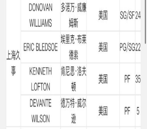 其中,上海男篮新援多诺万-威廉姆斯完成注册。