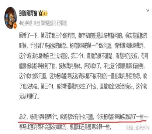 深夜2点,杨鸣发文回应CBA争议吹罚!名记:等CBA追加处罚