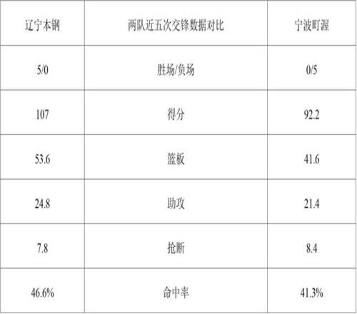 上赛季两队交手2次,辽宁本钢2胜0负。
