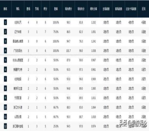 CBA积分榜最新排名出炉!广东双杀山西重返第2:辽篮被挤到第14