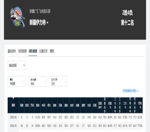 成绩方面,新疆男篮也有退步。上赛季常规赛,他们的胜率可达到69.6%;本赛季6轮过后,球队胜率仅为33.3%。