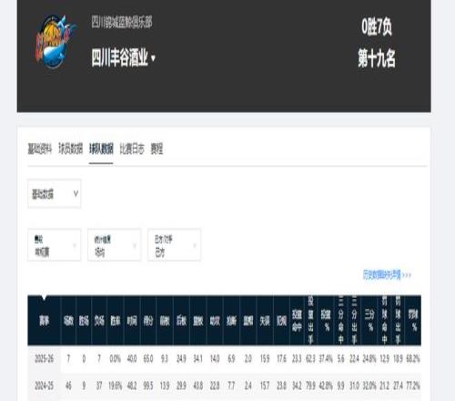 命中率方面:上赛季,四川队投篮命中率42.8%,本赛季只有37.4%;上赛季三分命中率32%,本赛季只有24.8%。他们的进攻效率已严重低下。7场过后,四川队也成了联盟唯一一个没有胜场的球队。他后期虽已引进外援,但恐怕也无力回天。