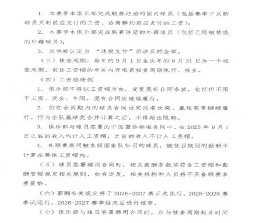 这次的工资帽制度,在本赛季是试行阶段,下赛季,也就是2026-2027赛季将正式运行。我们来看一下此次规定的几项具体细则: