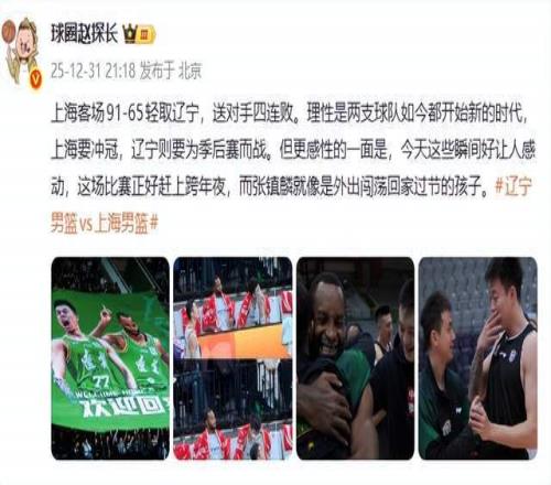 广东媒体人麦穗丰则认为:在2025年最后一场比赛中,辽宁男篮主场65比91爆冷不敌上海男篮,以一场失利告别2025年。据统计,辽宁男篮赛季至今爆冷5次,近期更是4连爆。