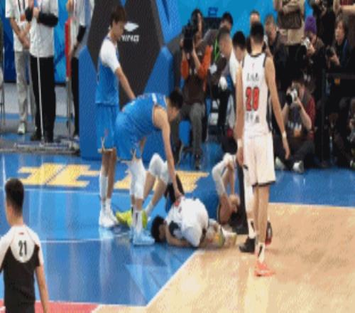 这一幕发生在第二节比赛还剩下4分钟左右的时候,当时北京男篮以38-21领先。北京男篮进攻得手后,北京男篮在后场快速发球,周琦在快下的过程中被背后的萨姆纳推了一下,失去平衡后摔倒。巧合的是,周琦倒地后直接撞在了徐杰的左小腿部位,徐杰立刻被周琦撞倒在地。