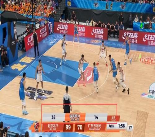 第一个好消息——曾凡博复出后状态火热。这一场比赛北京首钢赢得有点狠了,出乎不少球迷预料,赛前很多球迷预测,北京这场少了陈盈骏,替补阵容没人带可能会很难打,赵睿还会像上一轮打广厦那样打得很累,但没想到昨晚北京不仅首发打得好,替补也更是完胜广东,第四节还剩2分钟阶段,当时北京已经取得99-70领先,此时导播在屏幕下方打出了广东和北京两队板凳得分对比,北京38-14遥遥领先广东,说明这一场北京首发和替补都同样出色。