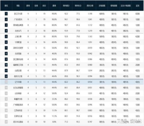 CBA积分榜最新排名出炉!广东双杀山西重返第2:辽篮被挤到第14