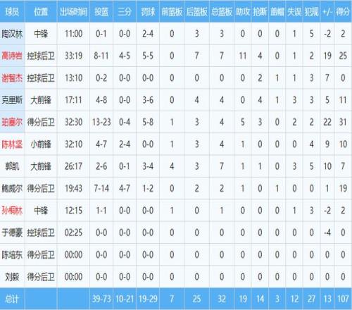 孙桐林在内线人手不足的情况下顶了12分钟,包办脏活累活,被撞翻在地的场景屡见不鲜。7.1分,是球迷对他任劳任怨的肯定。郭凯同样五犯离场,贡献7分7篮板,表现中规中矩,获评8.6分。另外,主教练也获得9.6分的高评分。他在克里斯被驱逐后怒摔西装表达对裁判的不满,虽然也被罚回更衣室,但很大程度上激发了其他球员的斗志。