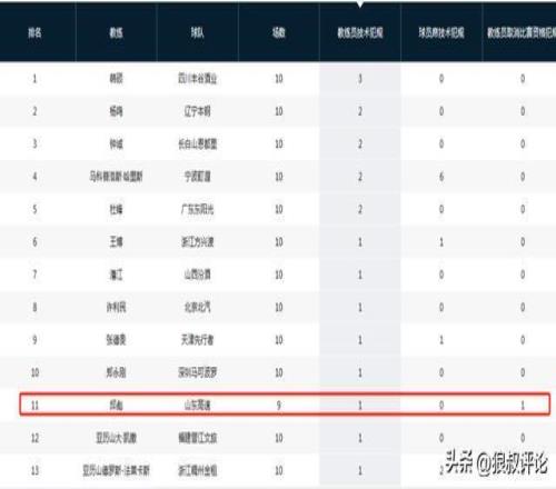 而在取消比赛资格犯规方面,邱彪成为唯一被驱逐的主帅,引发球迷和媒体的热议。