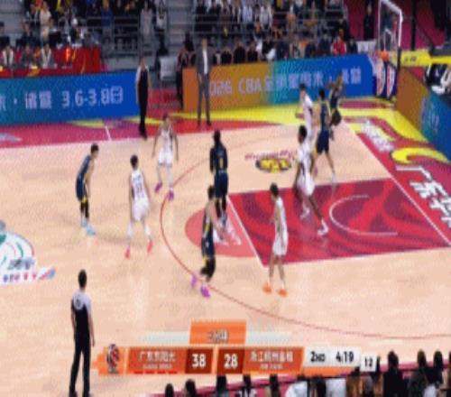 焦泊乔遭达卡里血帽,萨林杰空切轻松得手,奎因上演高难度滞空补篮连得4分;接下来焦泊乔接萨林杰内传内助攻再上分,3分42秒徐杰轻松完成1打0上篮+飚进个人第4记三分后,广东一波19-8领先来到62-46!