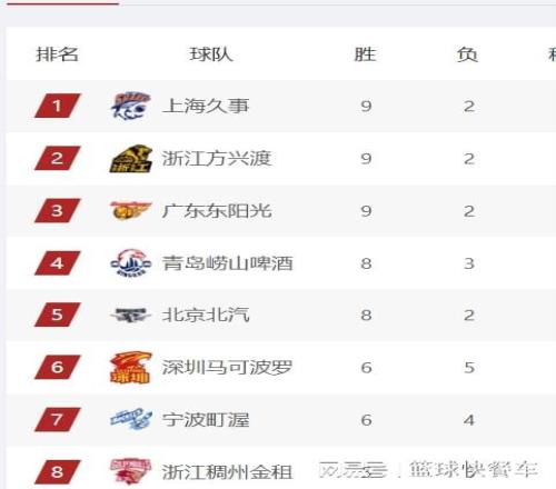 附:CBA积分榜最新排名