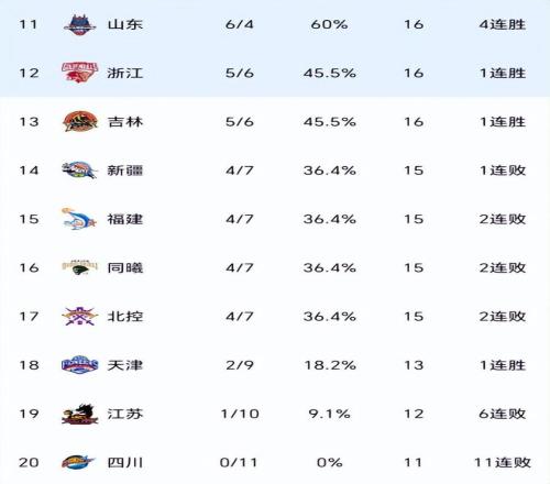CBA积分榜最新排名出炉!广东双杀山西重返第2:辽篮被挤到第14