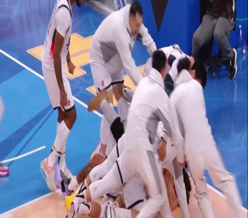 球进灯亮的瞬间,山东男篮全体球员兴奋地冲进场内,和珀塞尔“叠罗汉”庆祝。这位表现极为出色的小外援以53.3%的命中率砍下22分,另有3篮板4助攻。