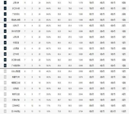 CBA积分榜最新排名出炉!广东双杀山西重返第2:辽篮被挤到第14