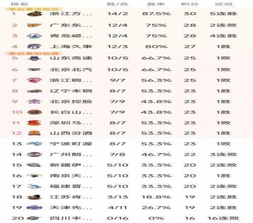 CBA积分榜最新排名出炉!广东双杀山西重返第2:辽篮被挤到第14
