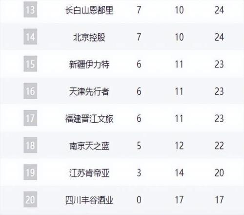 13-18名分别为吉林、北控、新疆、天津、福建和同曦。吉林和北控本轮均告失利,其中张庆鹏执教的北控队防守问题依旧突出,未见明显改观。新疆队防守强度提升后,后续赛程相对轻松,有望凭借一波连胜冲击更高排名。天津队保持四连胜,强势崛起势头明显。福建和同曦则持续低迷,特别是同曦队,除郭昊文外,其他本土球员表现乏力,主教练王世龙的防守体系尚未成型。