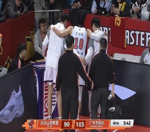 另一个值得广东球迷担忧的是内线球员焦泊乔。在末节还有5分42秒,焦泊乔被队友胡明轩绊倒,之后良久不起,被队友扶着单脚跳走离场。他的伤情到底有多重?牵动着了广东球迷的心。据报道赛后焦泊乔还出席了新闻发布会。他本场表现不错,给吉林队制造了杀伤,获得8次罚球,出场15分钟拿到11分和7板,也许他获得并列全队最多的篮板球,有资格出发布会。
