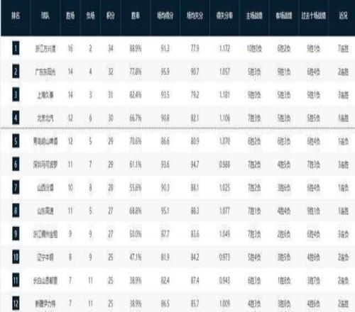CBA积分榜最新排名出炉!广东双杀山西重返第2:辽篮被挤到第14