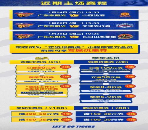 1月24日,CBA常规赛第19轮,广东东阳光将在主场迎战山西汾酒男篮。两队在第7轮有过一次碰面,华南虎客场以95-89击败对手。