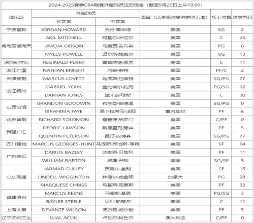 体育资讯9月20日报 今天,CBA官方更新了外籍球员注册信息表。其中: