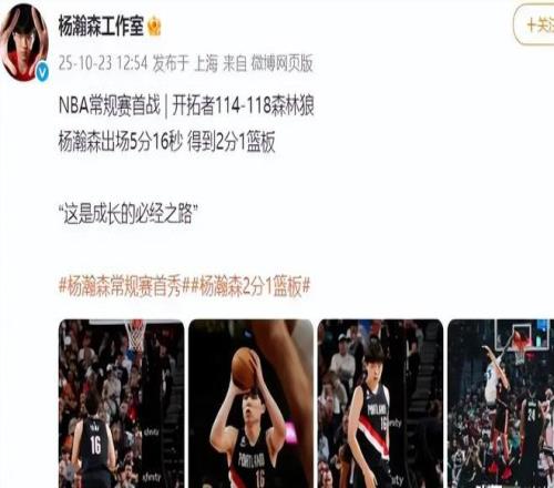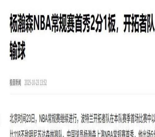 环球网:(山东小伙杨瀚森NBA常规赛首秀,贡献2分1板,下半场未登场2025.10.23)