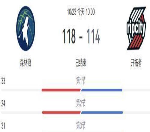 最终比赛结束,开拓者以114-118输给了森林狼,仅仅4分之差让他们成了输家。