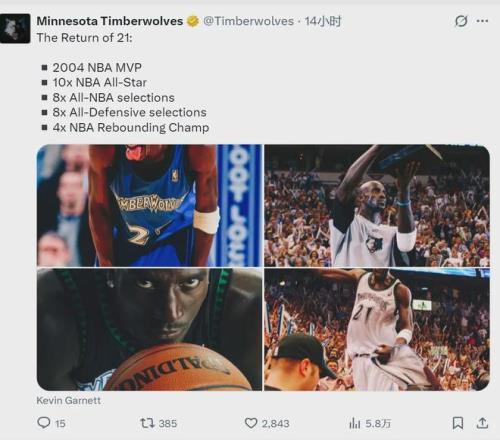 效力森林狼期间,加内特一次当选常规赛MVP,10次入选NBA全明星,8次入选NBA最佳阵容,8次入选最佳防守阵容,4次当选NBA篮板王。无论数据还是荣誉,21号的加内特都配得上退役球衣。最后恭喜KG,希望这一天早点到来!